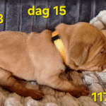 Onderstaande fotocollages geven een duidelijk beeld van de ontwikkeling van de pups in hun eerste levensweken. Je ziet week na week hoe ze groeien, zowel in gewicht als in gedrag en uitstraling. In deze periode doorlopen ze belangrijke mijlpalen: het openen van de oogjes, de eerste reacties op geluiden en het steeds actiever verkennen van hun omgeving. Zo ontstaat een mooi overzicht van de overgang van pasgeboren pup naar een levendige, nieuwsgierige jonge hond.